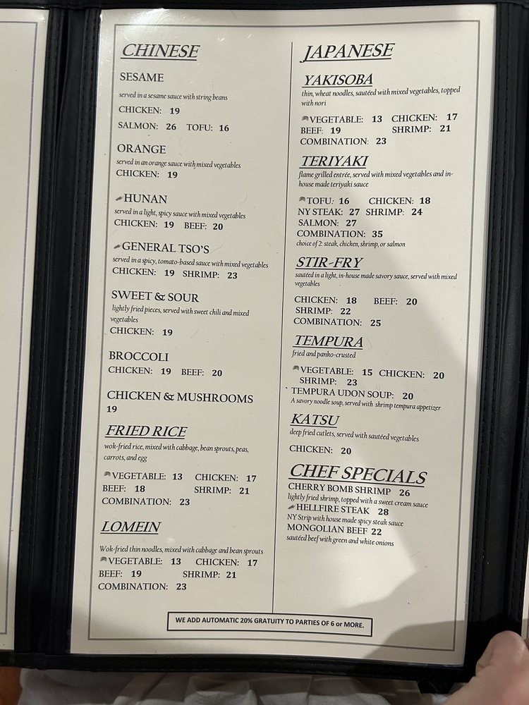 As you delve into the Chinese entrees, don't miss the Sesame Chicken, harmoniously paired with string beans, and the savory Sesame Beef, each exuding a mouthwatering depth of flavor. With catering services, outdoor seating, and a full bar, Yoshi Zushi offers a welcoming atmosphere perfect for any occasion.