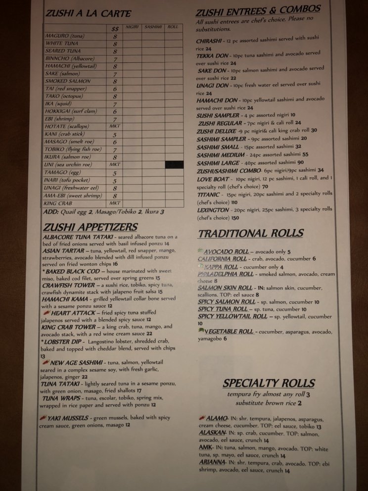 Yoshi Zushi Japanese Cuisine Menu (Update 2025)